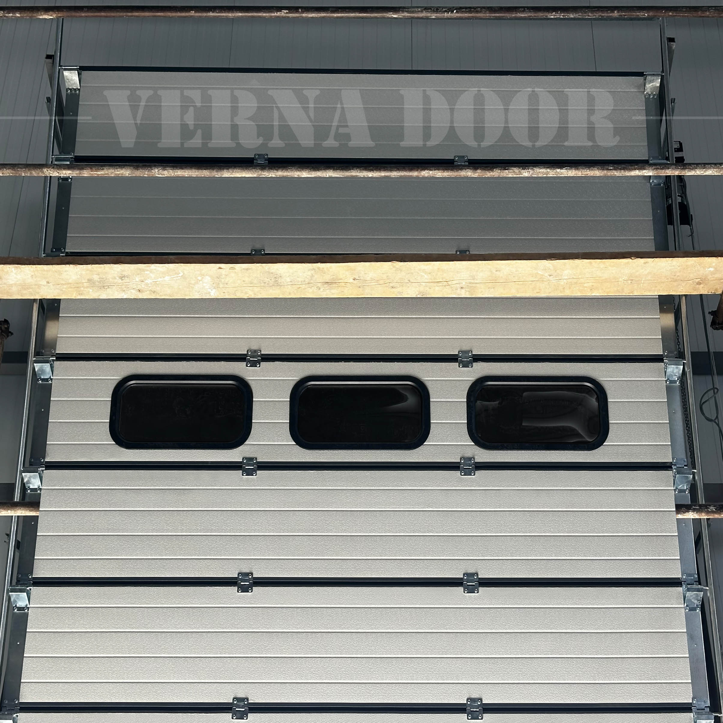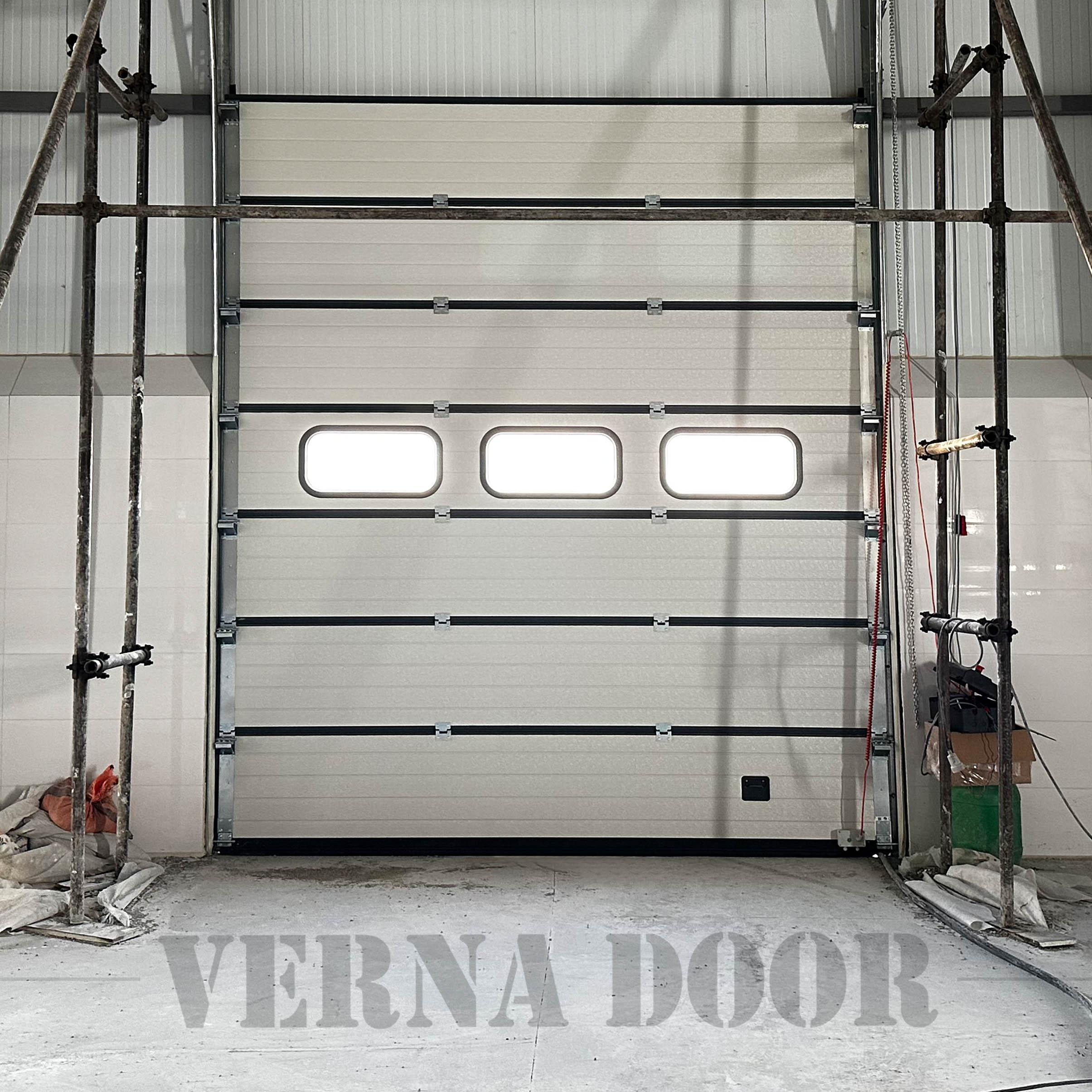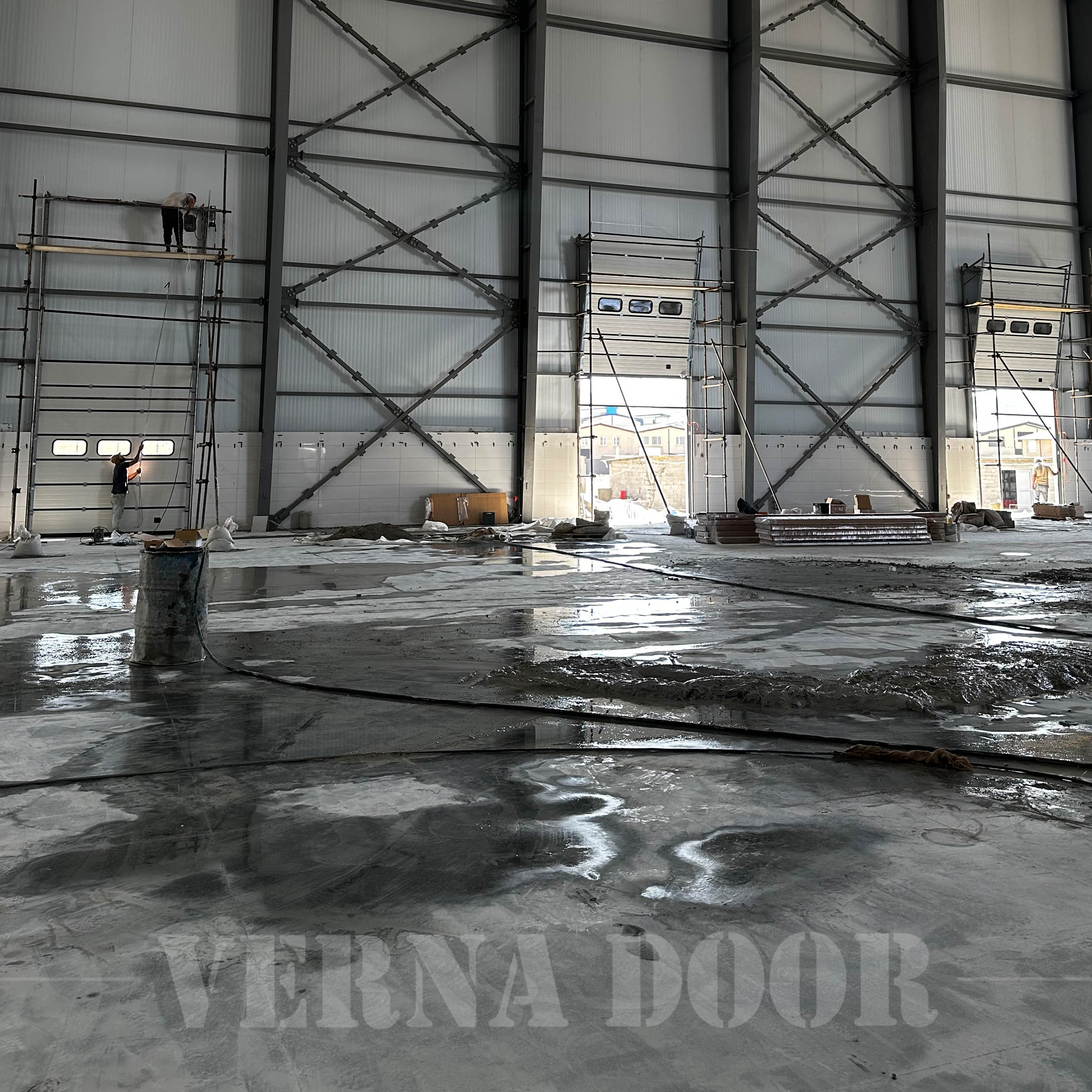 همچنین شرکت ورنادر ، ۵ عدد درب سکشنال صنعتی نصب کرده که تیپ حرکتی آنها ورتیکال بوده و از پنلهای سطح صاف طوسی رنگ با پنجرههای تعبیهشده روی دربها تشکیل شده است. این پنلها از نوع ساندویچ پنل با ضخامت ۴ سانتیمتر هستند که از دو لایه فولاد گالوانیزه مقاوم ساخته شده و در داخل آنها فوم پلیاورتان با دانسیته بالا تزریق شده است؛ این ساختار باعث شده دربها عایق بسیار خوبی در برابر ضربه، حرارت و صوت باشند. تمامی دربها به همراه فنرها و متعلقات فنی توسط نصابهای حرفهای شرکت ورنا بهصورت کامل نصب و راهاندازی شدهاند.